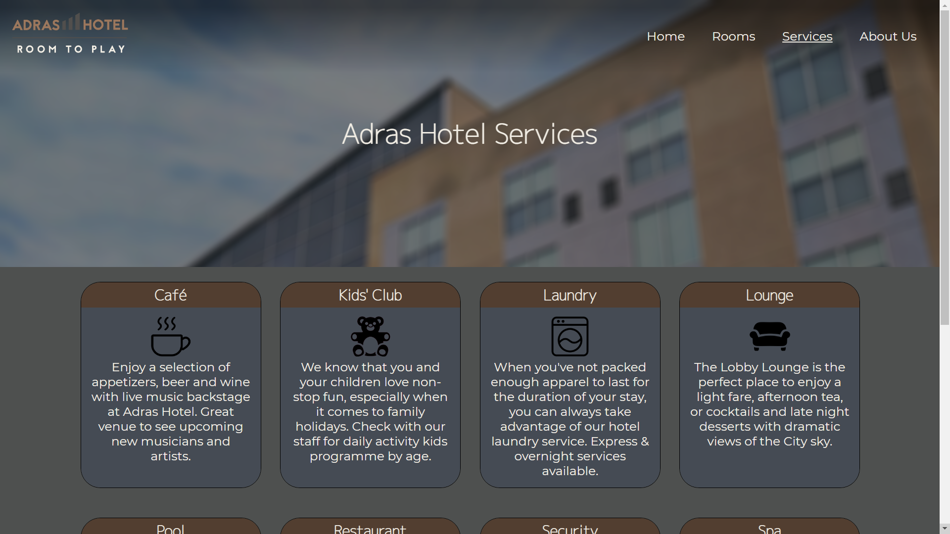 The system made for Adras Hotel is an online website for clients to see what Adras Hotel can offer. The purpose of the website is to advertise the beauty and premium features of the Hotel, the website will also feature room reservations, check vacancies, and contact the hotel's management.